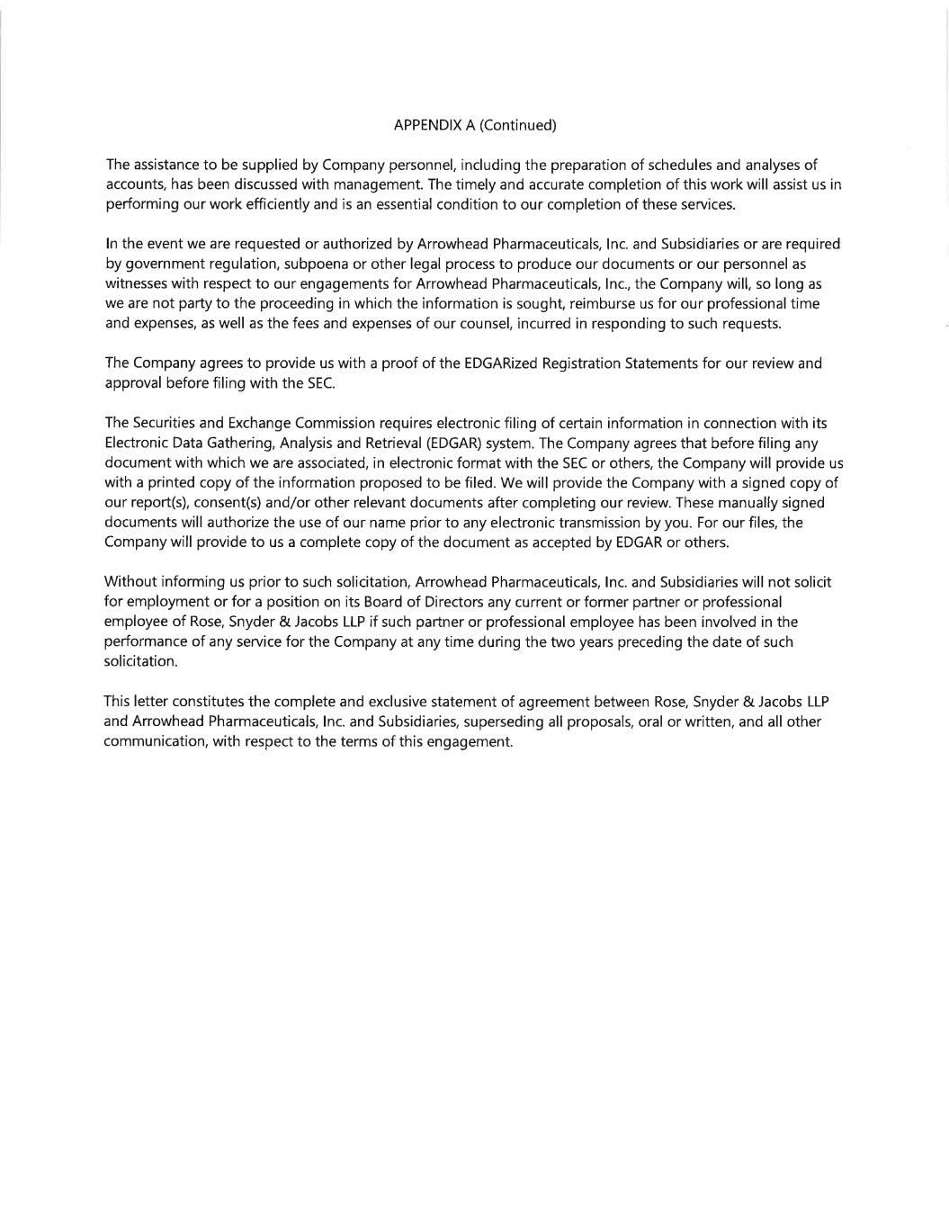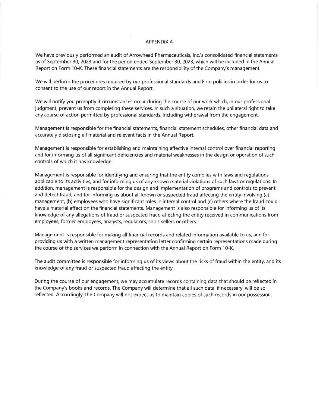 Unless otherwise noted, (1) the term “Arrowhead” refers to Arrowhead Pharmaceuticals, Inc., a Delaware corporation and its Subsidiaries, (2) the terms “Company,” “we,” “us,” and “our,” refer to the ongoing business operations of Arrowhead and its Subsidiaries, whether conducted through Arrowhead or a subsidiary of Arrowhead, (3) the term “Subsidiaries” refers to Arrowhead Madison Inc. (“Arrowhead Madison”), Arrowhead Australia Pty Ltd (“Arrowhead Australia”), Arrowhead Pharmaceuticals NZ Limited (“Arrowhead New Zealand”), Arrowhead Pharmaceuticals Ireland Limited (“Arrowhead Ireland”), and Visirna Therapeutics Inc. (“Visirna”) (4) the term “common stock” refers to Arrowhead’s common stock, (5) the term “preferred stock” refers to Arrowhead’s preferred stock and (6) the term “stockholder(s)” refers to the holders of Arrowhead common stock.